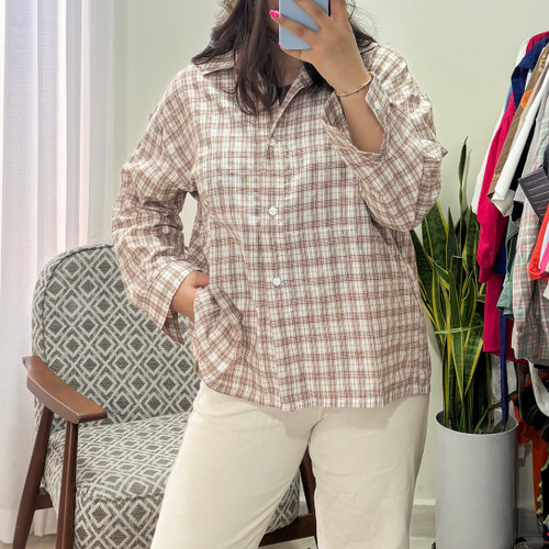 شومیز یقه گرد دکمه دار تک جیب اور سایز